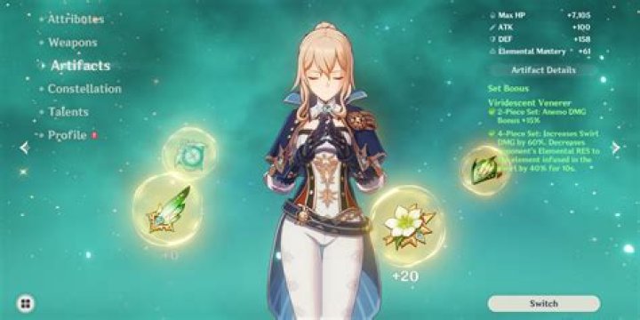 When it comes to artifacts, selecting the right sets can enhance Jean's capabilities significantly. Here are the recommended artifact sets: