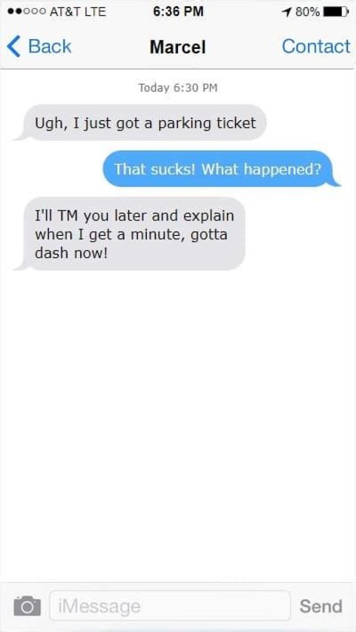 - Texting: "Hey, I just finished the meeting, TM later?"